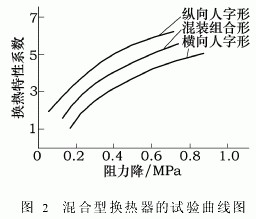 图2为混合型换热器的试验曲线图。从图中可以看出,混装组合曲线介于单独组装时的曲线之间。